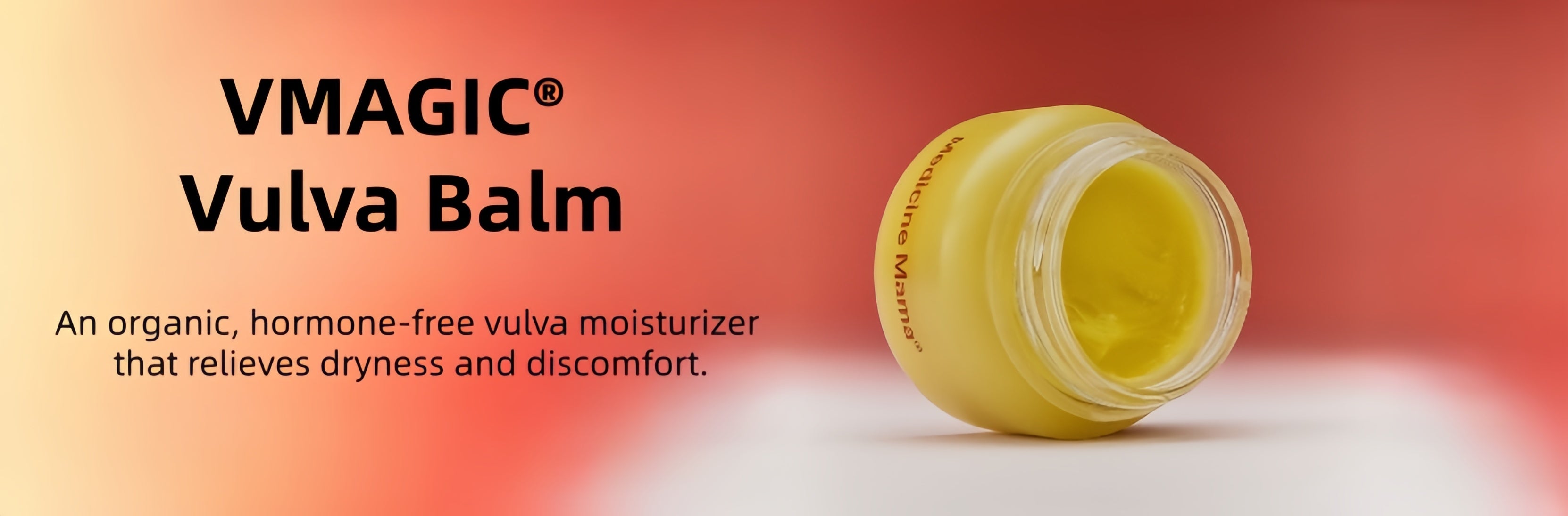 The delicate skin of the vulva can become irritated by many factors including aging, friction, and/or use of products not specifically designed for this beautiful and delicate area. Vmagic vulva balm provides soothing hydration to relieve discomfort from most vulvar irritants. Many of our customers find relief from (peri)menopause dryness, vulvar dryness from breastfeeding, sensitivity to shaving or waxing, tight clothing or even friction from sex. Our product can be used any time of day and is safe and recommended for daily use as part of a well rounded skin care ritual.